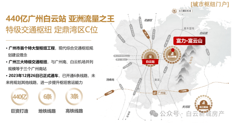 富力·富云山是富力集团以最高产品系打造的广州全新高端人居代表作,位于白云山西麓,白云新城CBD核心区。项目总建筑面积约200万㎡,是一个集住宅、商业、教育、休闲于一体的全能配套大城。富力·富云山不仅坐拥一线山景,咫尺珠江新城,还拥有成熟的配套和卓越的居住环境,成为广州高端住宅市场的标杆之作。