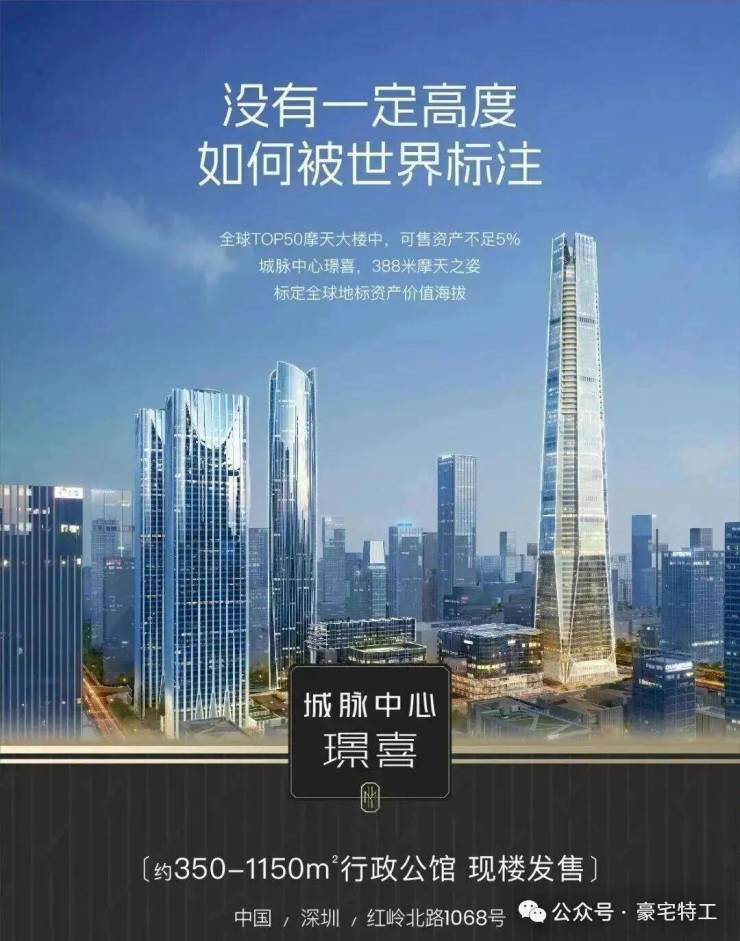 深圳城脉中心璟喜(别名:城脉金融中心)是位于深圳罗湖福田双中心之上的高端豪宅项目,坐拥388米天际地标高度。