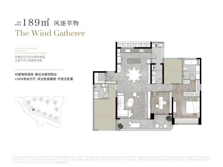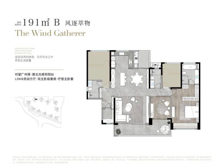 190㎡户型南北对流双阳台,南看2万方花园绿洲,北望珠江新城CBD,这就是触手可及的豪宅“天花板”该户型设有入户玄关和储物间,通过将客厅、餐厅、厨房和阳台一体化设计,LDKG布局创造了一个开放、共享的生活空间,使家庭成员可以更容易地聚集在一起,享受家庭时光。