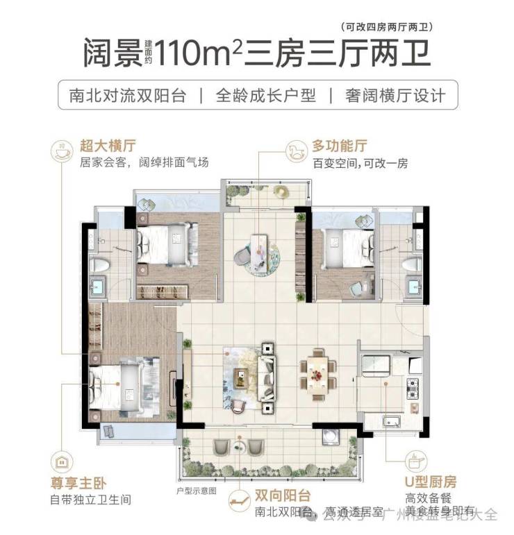 【户型】:建面约88-110㎡三至四房(可改)
