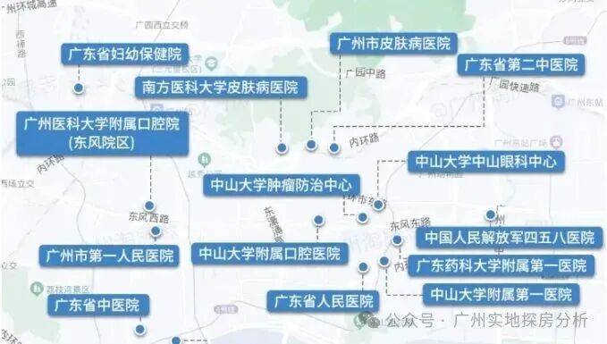 项目周2公里范围内,广东省人民医院、中山大学附属第一医院、广州医科大学附属第一医院、越秀区中医医院、越秀区妇幼保健院等。