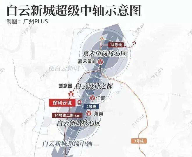作为广州城市中轴的重要组成部分之一,白云新城超级中轴,串联了白云新城、设计之都、嘉禾望岗三大板块和白云站TOD等重要枢纽,撑起了整个白云发展的脊梁,潜力毋庸置疑。