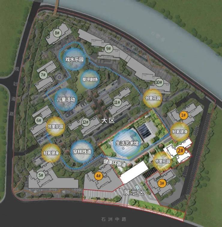 这种大尺度的绿化礼赠在广州南站片区尤为稀缺,使居住者能在繁忙的都市节奏中获得真正的沉浸式自然体验。不同年龄层的使用需求也被充分考虑:儿童活动场、健康步道、互动草坪、宅间花园及休憩空间相互串联,形成全天候的生活场景。社区还规划了户外泳池、私享会所等复合配套,使健康、社交与休闲更加一体化。