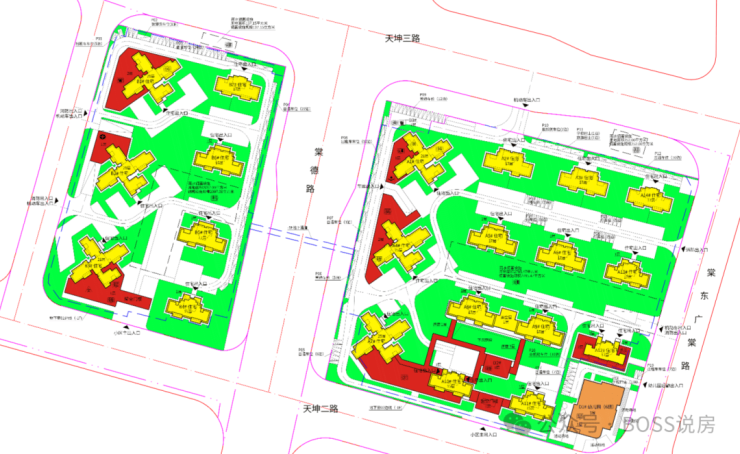 整体布局:21 栋住宅,15 栋板楼 + 6 栋塔楼,采用 “西侧塔楼 + 东侧板楼” 排布,楼间距宽阔,减少遮挡。