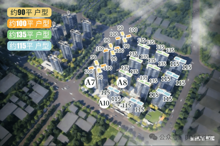 项目首开A7/A8/A10座,户型有90-100-115-135平的三到四房~