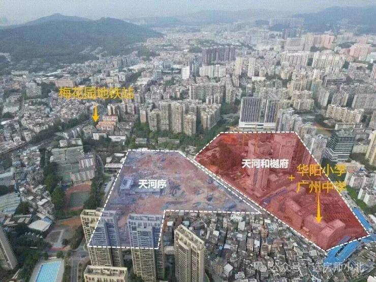 项目坐落于天河与白云两区交汇处的梅花园板块,是一块极为罕见的成熟用地,周边配套设施尚算完备,但城市面貌仍有待提升。