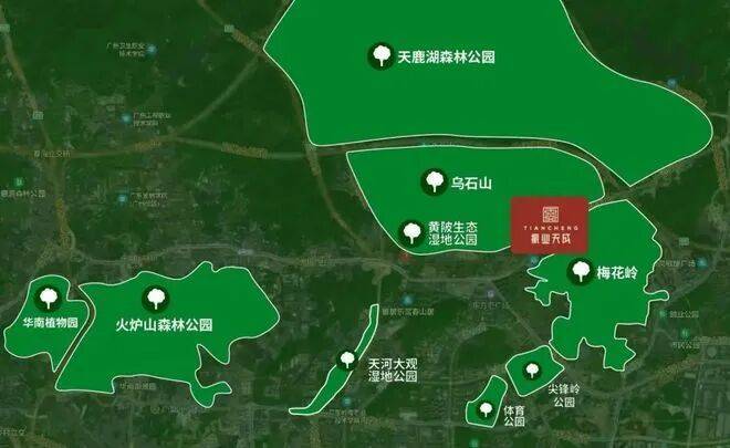 项目北靠乌石山,南望梅花岭,临近约 880 公顷天鹿湖森林公园,周边 6 大公园环绕,生态资源丰富。虽未提及集萃梁园造园之精髓,但低密度围合式设计与周边生态融合,营造出宜居环境。居住舒适度高,适合追求低密生活的改善型人群。