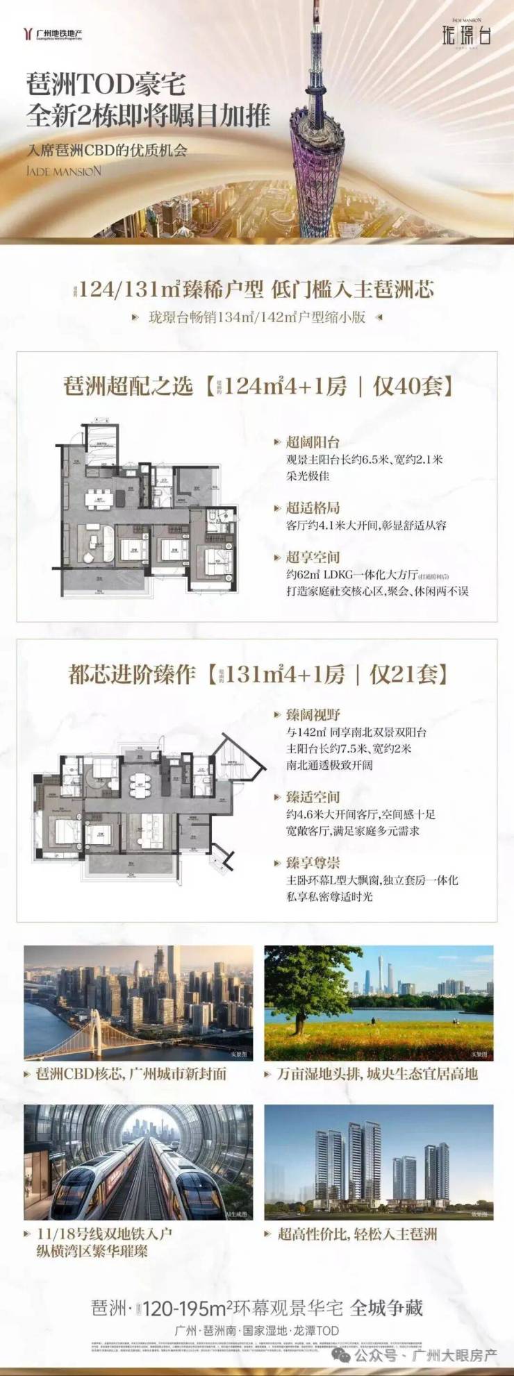 广州地铁地产·珑璟台推出最后一栋2#,主打建面约123㎡、131㎡4+1房。