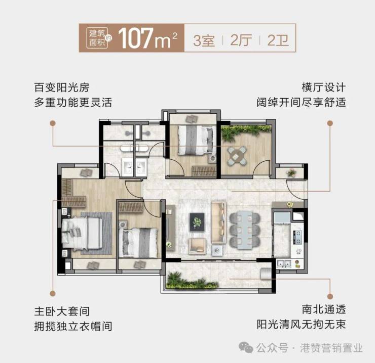 明星产品,宽敞横厅设计,客厅、主卧南北对流,搭配5.8米大阳台,超高性价比!