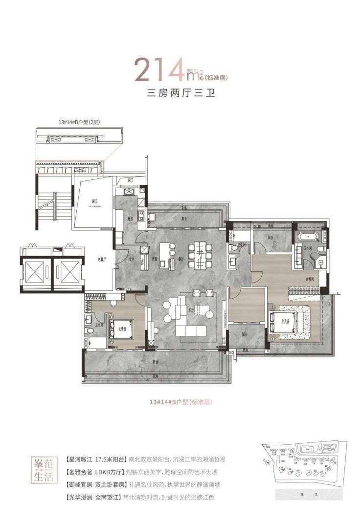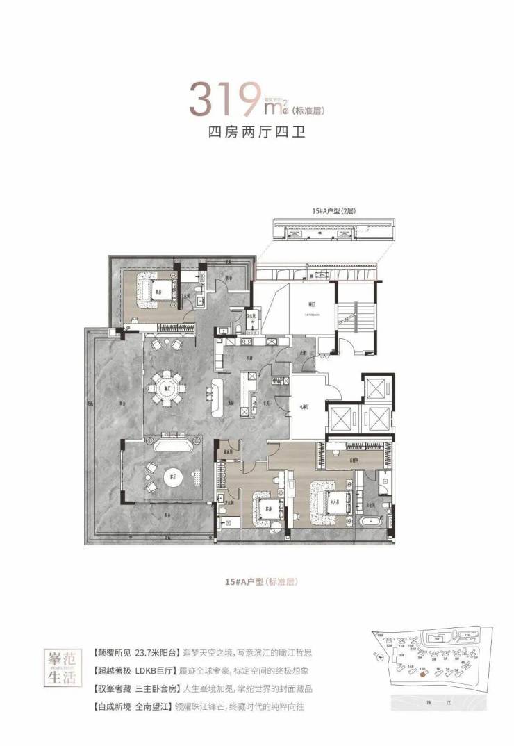 【户型面积】:约125-142㎡四房两厅两卫/214-313㎡大平层