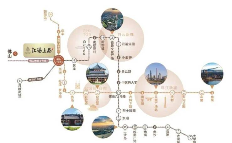 广州12号线、13号线、佛山8号线交汇,贯穿广州东西人文经济大动脉,广州五大区域核心版块无缝直达。