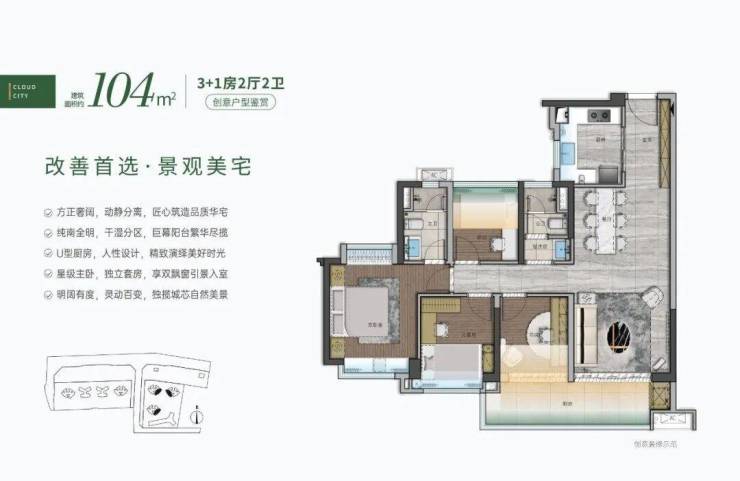 🏦一期在售户型:72m²/88m²/104m²