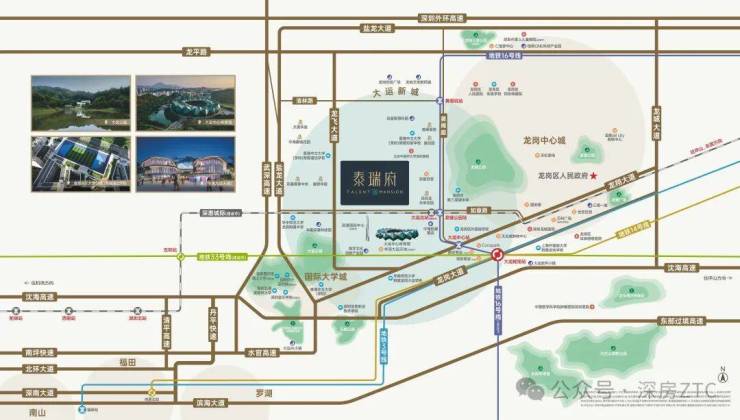 •地铁:紧邻地铁16号线龙城公园站(约600米),2站大运枢纽。未来地铁深惠城际(建设中)在此交汇,4站深圳北枢纽、5站西丽、8站前海;