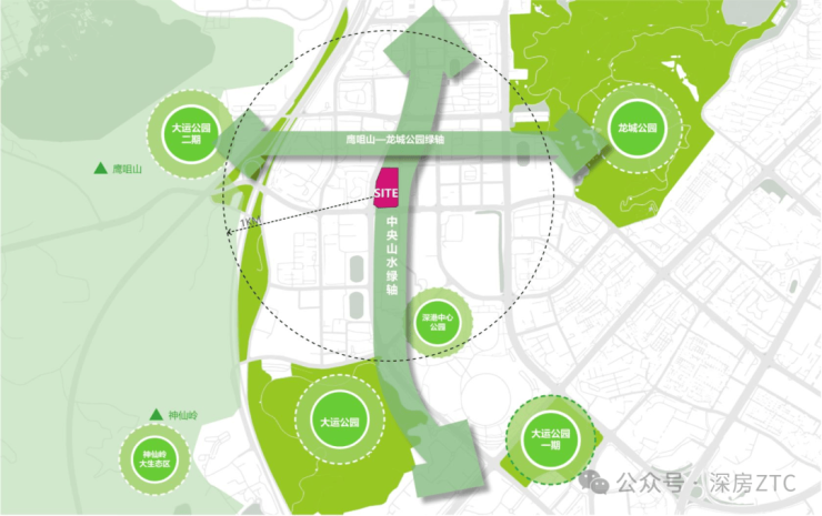•坐享大运公园(约418万㎡)、龙城公园(约189万㎡),环境优美,绿化率超50%,绿化率是福田中心的5倍、前海中心的4倍,是深圳首个“国家级生态示范区”。