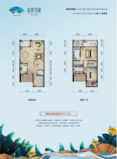 192-205平米,赠送104-123平米负一层,花园面积60-250平米。总价322-778万;