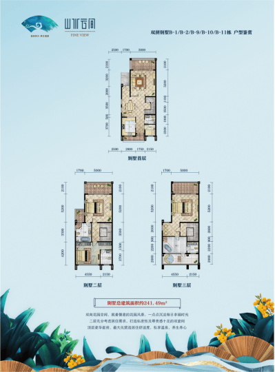 235-241平米,赠送57-88平米负一层,花园面积80-350平米。总价398-721万;