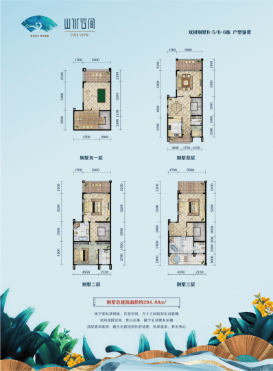 262-309平米,赠送80-150平米负一层,花园面积120-400平。总价740-1014万;