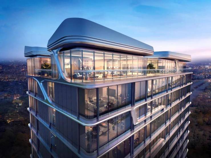 外立面是一座豪宅审美的具象,能不能一眼“摄魂”很重要。而走进臻溋名铸,第一眼就是这种感觉:「曲线美学」,真的能让建筑高级起来!香港著名地标建筑师刘荣广执笔的建筑立面,灵感来自法拉利游艇弧形线条,走的是“不常规”设计。一眼望去,大片玻璃幕墙,搭配双倍加厚铝板、弧形艺术造型,以扎实的质感,灵动的线条,呼应无界的曼妙珠水。