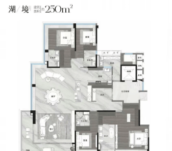建面约250㎡【湖境】户型,作为项目的高端旗舰户型,拥有约18.9米南向面宽,奢阔层高享受,约122方定制化多功能社交巨厅,15米转角阳台,一线观湖,全方位满足高端人群的居住与社交需求。约18.9米南向面宽,打造极致的采光与视野体验;奢阔层高,提升室内空间的通透感与舒适度,避免压抑感;约122方社交巨厅,采用豪宅主流LDKG一体化设计,将客厅、餐厅、厨房、阳台融为一体,无限放大家庭生活的精彩,也为业主提供了充足的社交空间,可满足家庭聚会、朋友宴请等多种场景需求;15米转角阳台,一线观湖,将太阳湖的美景尽收眼底,成为业主休闲观景、放松身心的绝佳场所。