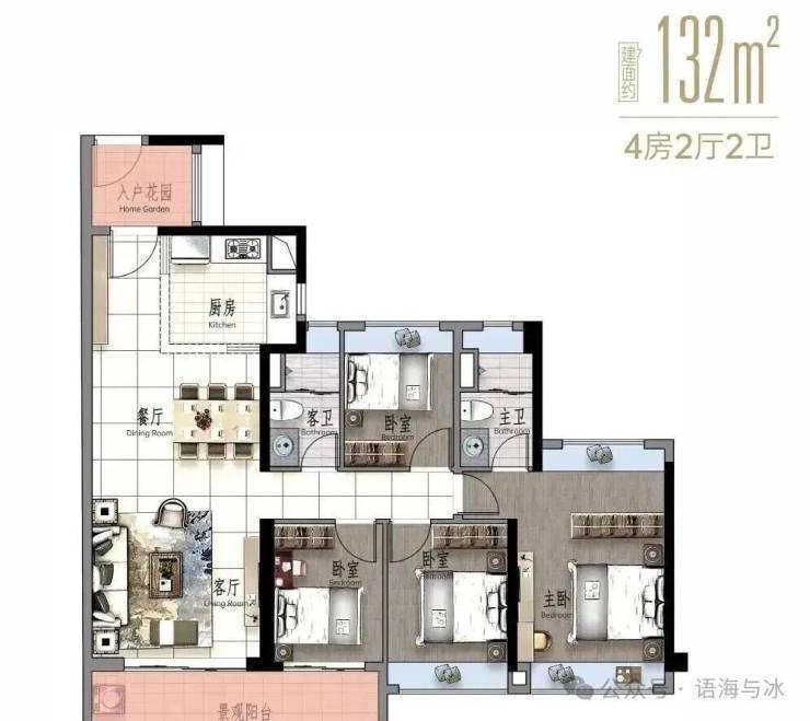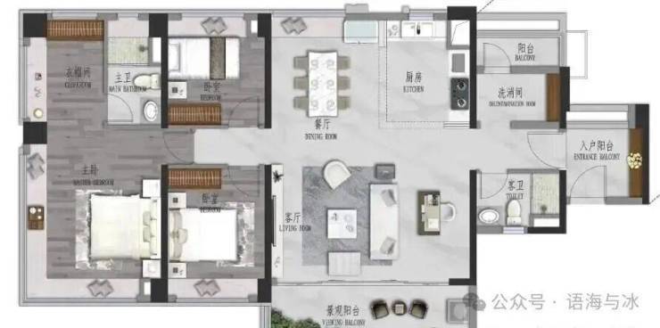 景观大阳台连通次卧--双套房设计,三代同堂更从容