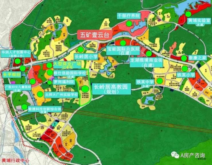此外,上个月位于长平站以东的一宗商业兼容二类居住用地,被区属国企广州开发区投资控股有限公司拿下。根据规划,该地块将建设不小于8万平方米的综合商场,及长岭居首个邻里中心,将成为长岭居首个大型商业广场,预计于2022年运营。五矿壹云台距离该项目直线距离约1.6公里。 医疗配套 :广州市干部疗养院、广医附属一院妇女儿童医院(三甲)、泰康之家粤园高端养老社区、中山大学附属第三医院岭南分院(三甲)、万达匹兹堡大学医学中心国际医院(规划中)等。项目背靠鸡啼山,周边植被环绕,有着优质的山景资源,空气质量佳,景观条件好。 【户型鉴赏】