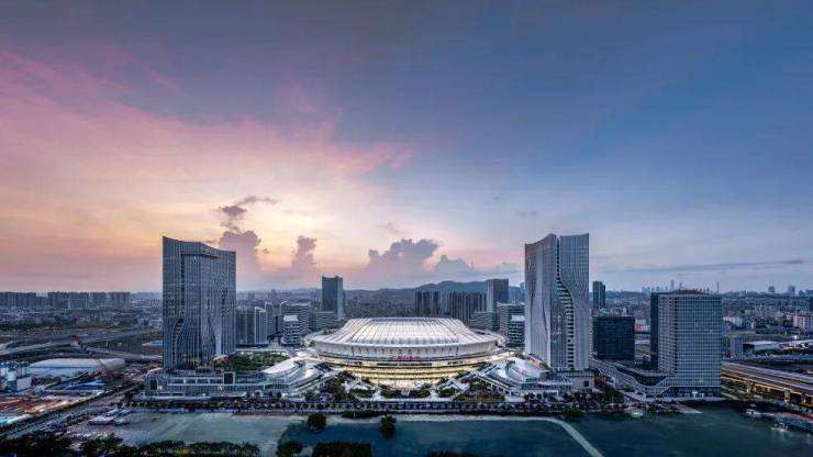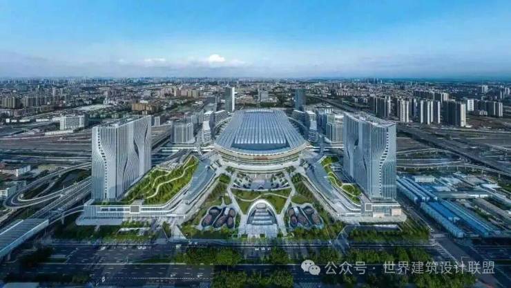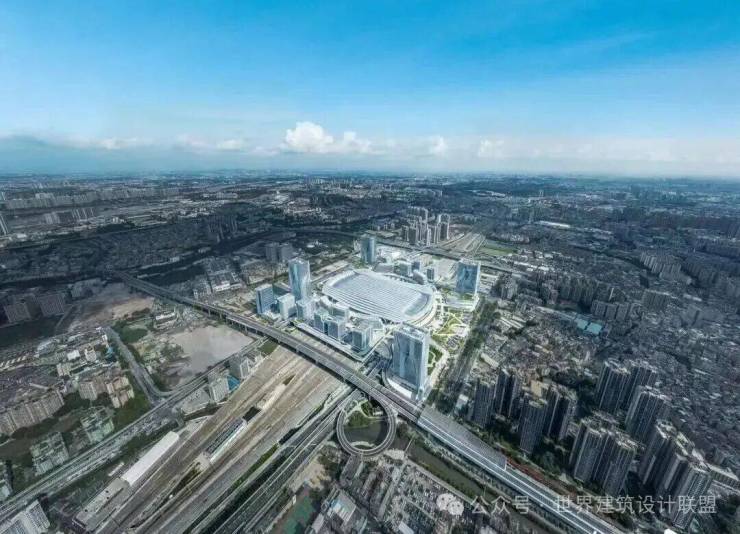 作为广州白云站一体化建设的重要组成部分,粤胜广场总建筑面积22万平方米,包含4栋超高层塔楼,集商务办公、居住、酒店、商业、休闲娱乐于一体。项目由何镜堂院士联合日建设计等团队,以“云山珠水,水润木棉”为理念设计,将岭南特色融入现代交通建筑。