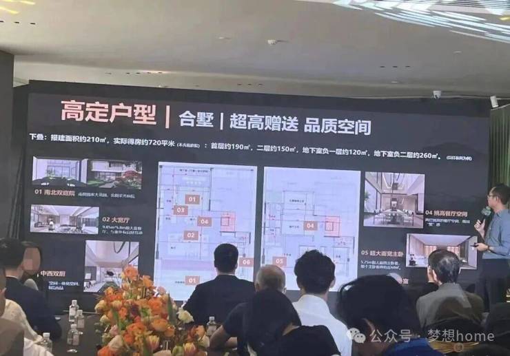 并且,下叠有南北双庭院、超57㎡客餐厅、中西双厨、挑高餐厅空间……