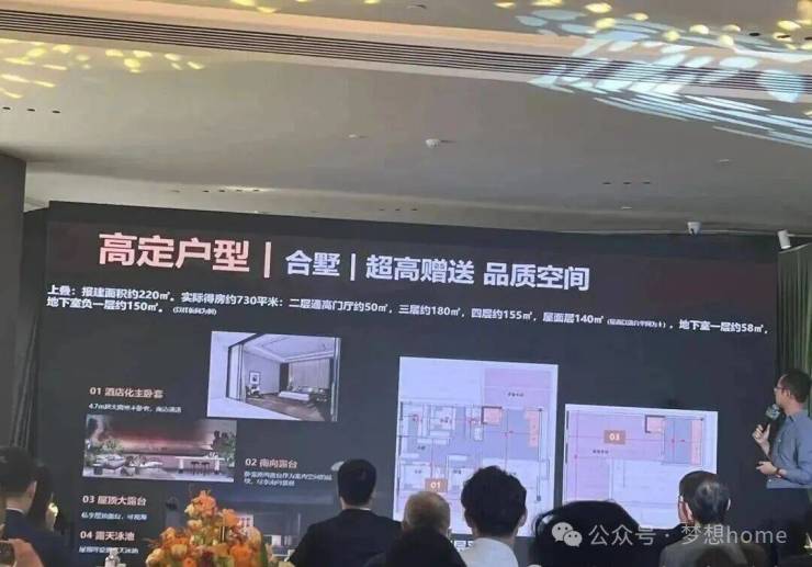 上叠产品报建面积约220㎡,实际得房建面约730㎡,换算一下,得房率约331%。