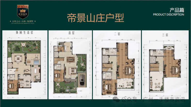 整个帝景山庄别墅产品地上三层地下一层设计,每一栋别墅都拥有全景式的观光落地窗,别墅特设三重花园景观引景入户,无论是在家里还是室外都能看见风景,令自然气息充满别墅的每一处空间。