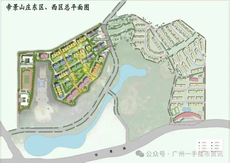 合生帝景山庄别墅地势北高南低依山而建,规划建设为天河大型都市半山生态别墅社区,整个项目分为A、B、C、D、E五个组团共218套别墅。其中A、B、C三个别墅组团早已全部售罄,目前整个项目只有最新的D、E两个别墅组团还有少量双拼别墅可售。