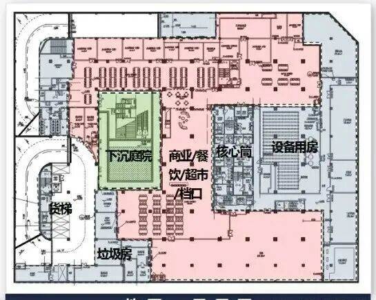 独特的下沉式庭院,商业配套/轻重餐饮、超市、美食档口多业态组合大布局开间。
