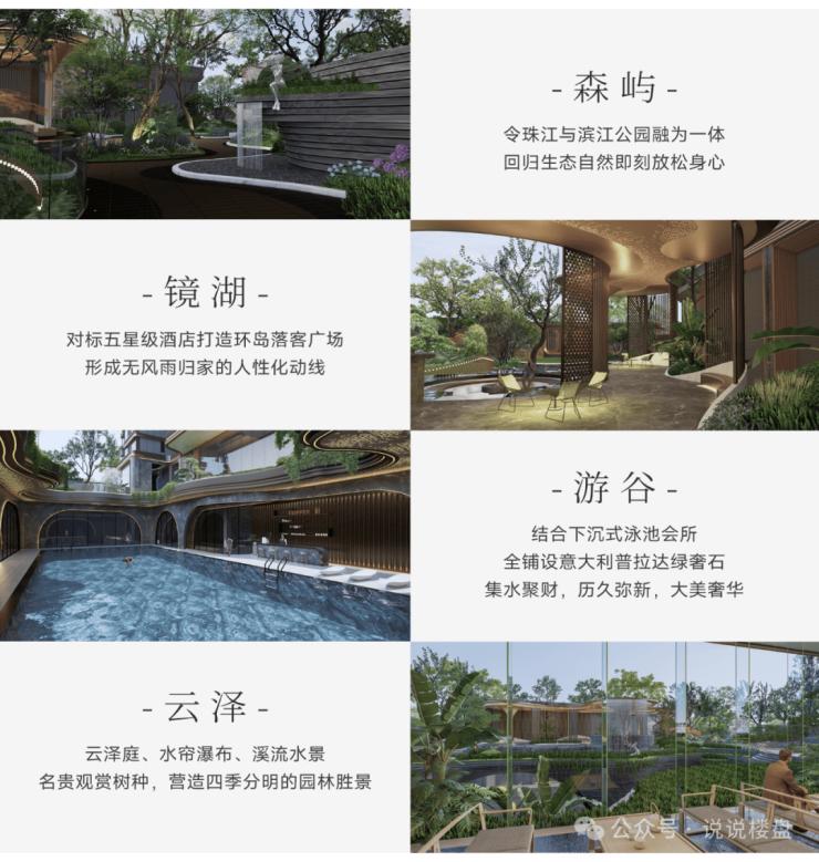 层层降噪,沉浸心灵的惬意归途,蓝调国际大师主笔,“溯源”广州在地文化,以珠江为源头,溯流而上,从外到内匠心打造:森屿、镜湖、游谷、云泽“四重景观礼序”,塑造优雅归家动线。