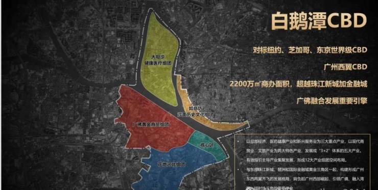 广州主城核芯,千亿白鹅潭强兑现传承千年商贸魅力,广州“十四五”规划划定荔湾新航道,锁定白鹅潭沿江经济带领头地位,斥资约2500亿投资,对标珠江新城,金融城发展战略,形成东西两翼黄金三角格局