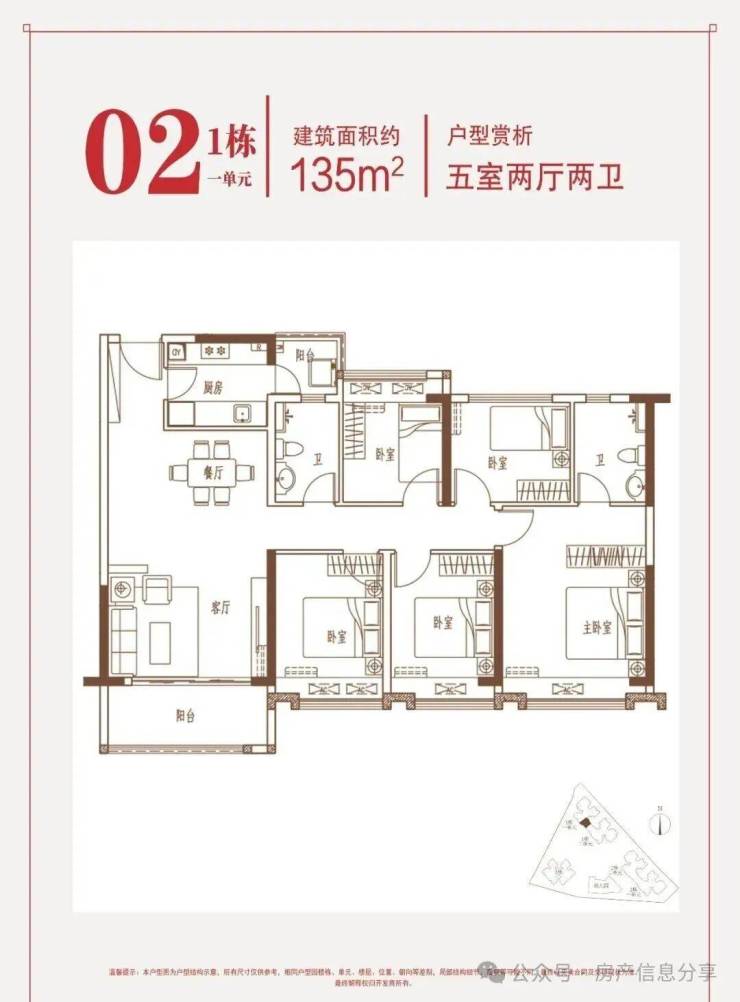 约135㎡五房:区域唯一同面积段5房,南北通透,花园中间更安静,北面看山南面看海。