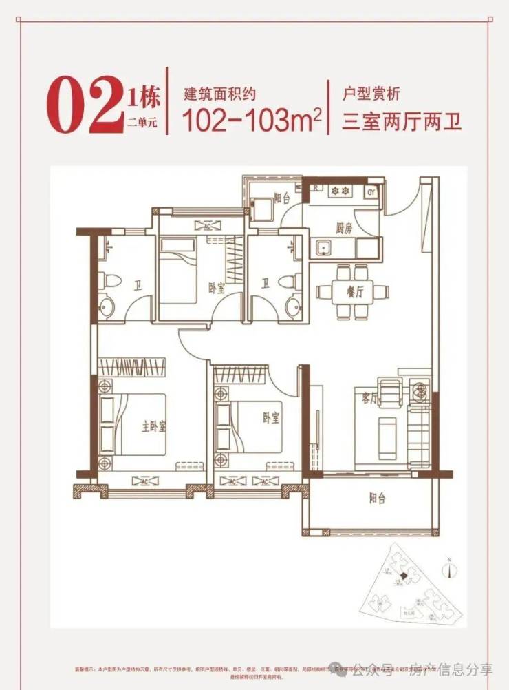约67㎡两房:东南朝向,片区内唯一在售2房。