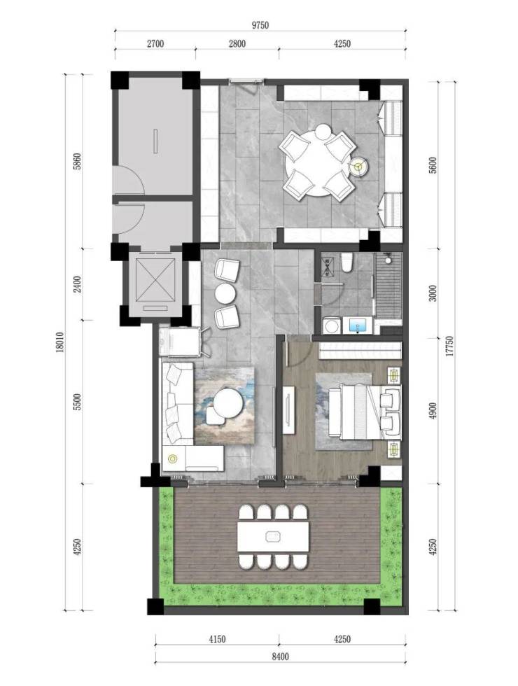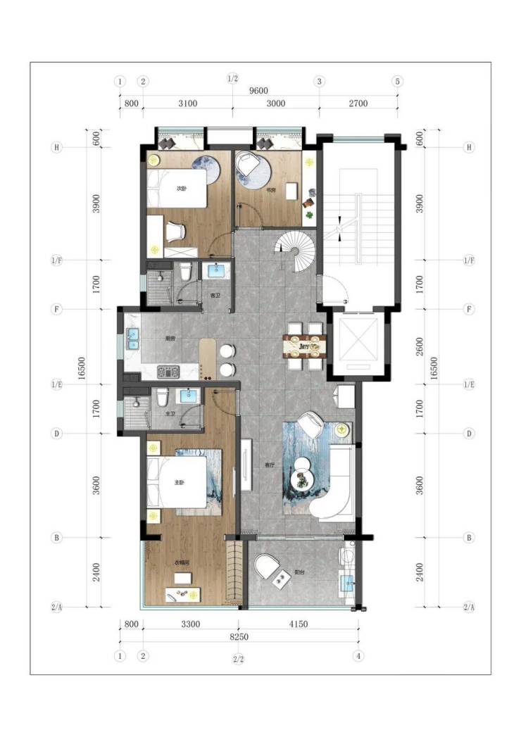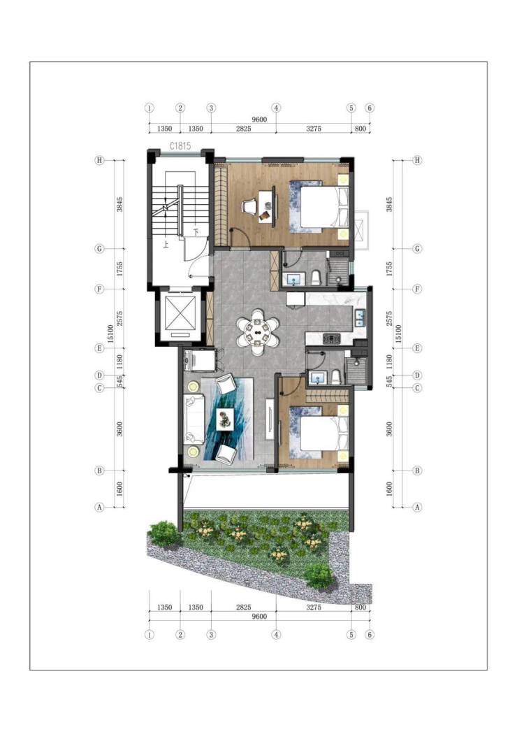 3.下叠:建筑面积约100-110㎡,四房三厅三卫。