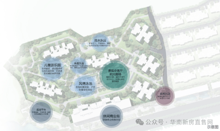园林6大主题空间串联,包括景观会客厅、戏水乐园、长者乐园、风情泳池、儿童游乐园和观湖平台,兼顾功能性和观赏性,打造具有温馨感、品质感、艺术感的空间体验,为业主提供一个鲜活的园林生活空间。