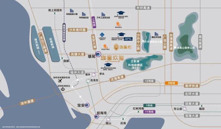 对于深圳购房者而言,“通勤便利” 是重要考量,而珈誉玖玺的交通优势堪称 “硬核”。项目紧邻地铁 11 号线塘尾站,门口连廊直连地铁站(主体已建成),步行距离仅约 300 米,真正实现 “下楼即达地铁口”。