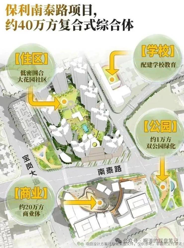 这里反手就是一个38万平综合社区,从配套来看,保利南泰路项目所有牌面筹码都已经摊开——一个“学铁商医园体住”七边形全熟配套圈。