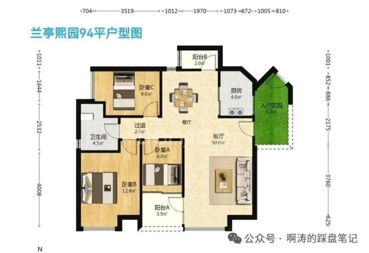 兰亭熙园:小规模小区,共两栋楼,2008年建成,72两房至94平三房,贝壳最新成交价4.2万/平,最大户型94平为三房一卫。