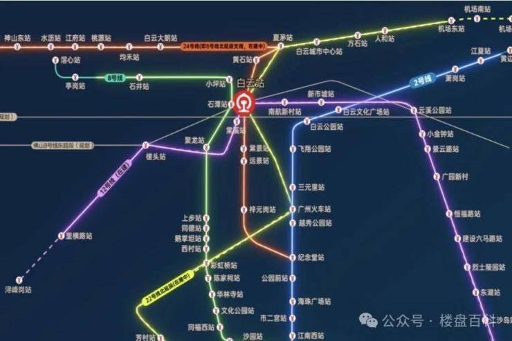 地铁——广州地铁8号线石潭站已经开通;22号线正在建设;东侧两条12号线和24号线均正在建设;还有两条南北走向线路横穿站房地下的佛山8号线和一条预留新线;6条地铁线路纵横交叉贯穿广州白云站;