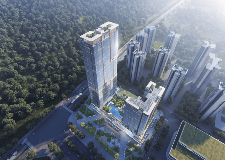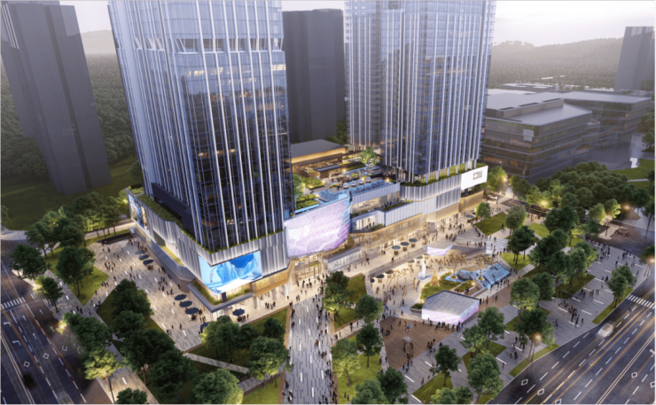 整体集购物休闲、社交娱乐、生态宜居、休闲体验、住宅于一体。其中住宅共有2栋7个住宅单元,其中1栋设计49层楼高,另1栋设计28层高。