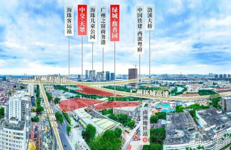 出行上,2号线与广佛线交汇站——南洲路站,就在项目西北角约400米处,而馥香园则是真正地铁上盖。
