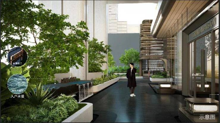 渗透式建筑景观规划——在户外空间融入自然元素的无障碍设计、临近建筑周边的会客厅场地,形成自然景观由外至内的延伸,让滨江樾业主在享受会客厅的休闲时光时,能与城市核心的自然之美,不经意相逢。