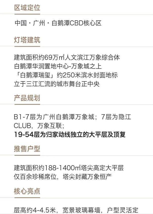 尽管具体户型面积未详细列出,但白鹅潭瑞玺以其全景云幕三面亲江设计,以及奢阔层高的设计理念,吸引了众多关注。其顶级住宅产品——白鹅潭悦府,更是凭借其卓越品质,在2023-2024年间累计成交金额接近100亿,连续霸榜片区千万级豪宅TOP1。