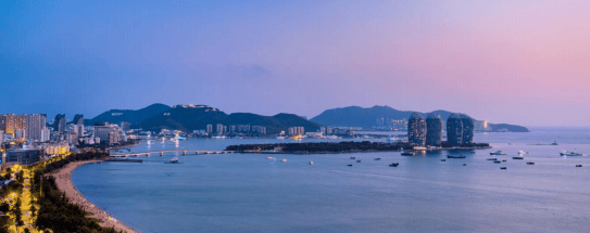 全岛围绕滨海旅居产业,以邮轮母港交通枢纽为核心串联东西,形成“东动西静”格局,构建国际滨海文旅复合型目的地。项目东临三亚河入海口,南面 4A级鹿回头公园,西邻玳瑁岛,北望南海观音,四面环海。