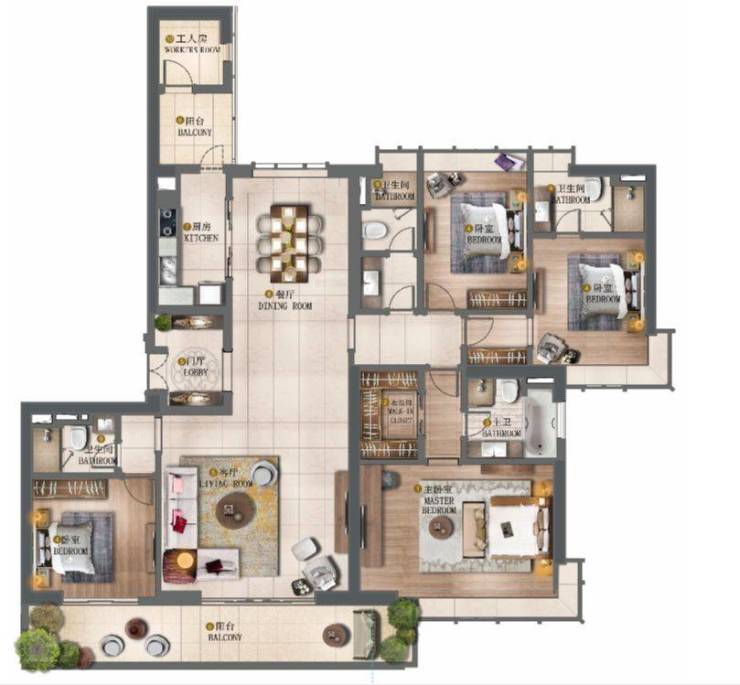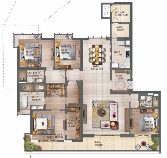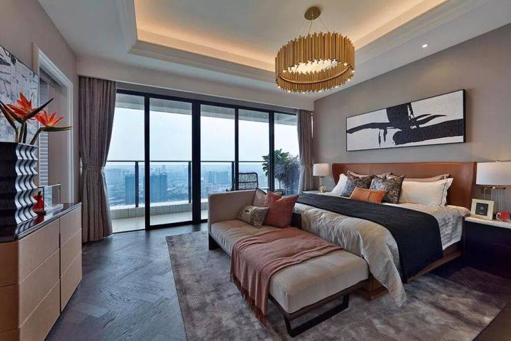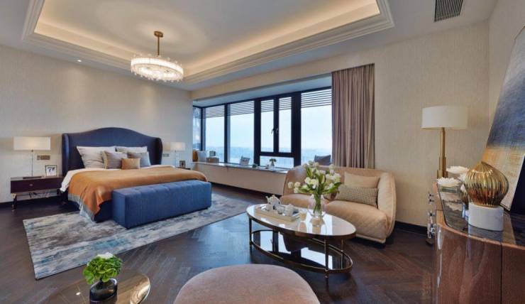 310 ㎡主卧,拥有 双衣帽间 。丈夫妻子,拥有独自的品味空间,堪比别墅生活。