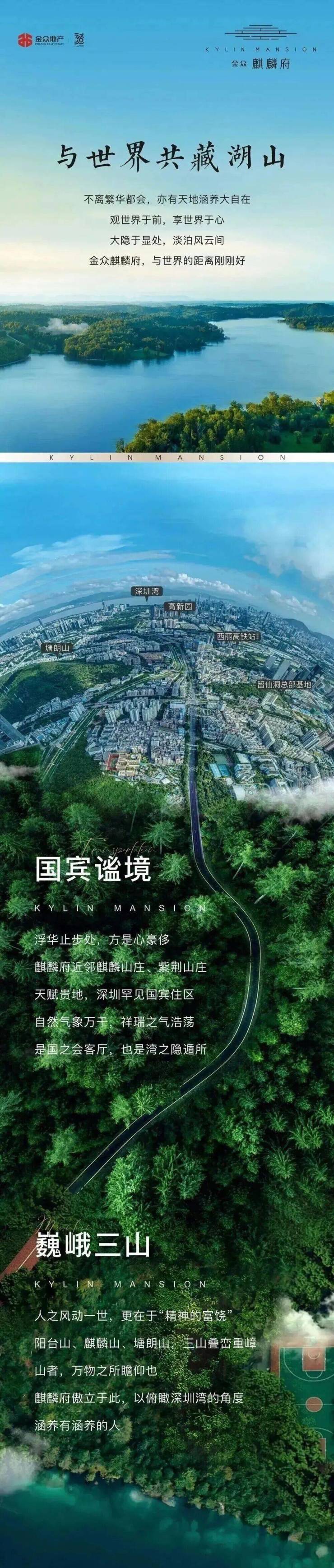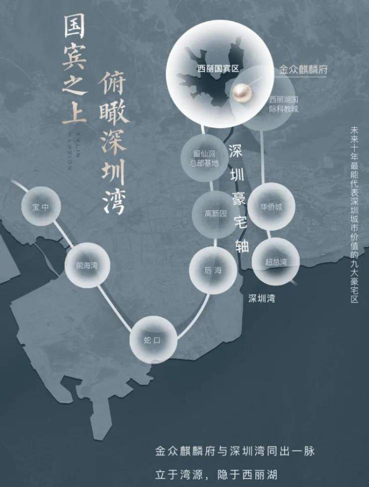 金众麒麟府,择址国宾馆麒麟山庄旁,于西丽湖山大境之上,私享国宾级尊崇礼遇。麒麟山庄,深圳第一国宾馆,占据深圳市中芯景观环境最好的西丽湖片区,深圳最高规格的接待地,深圳市委、市政府接待贵宾最高规格首选之地。