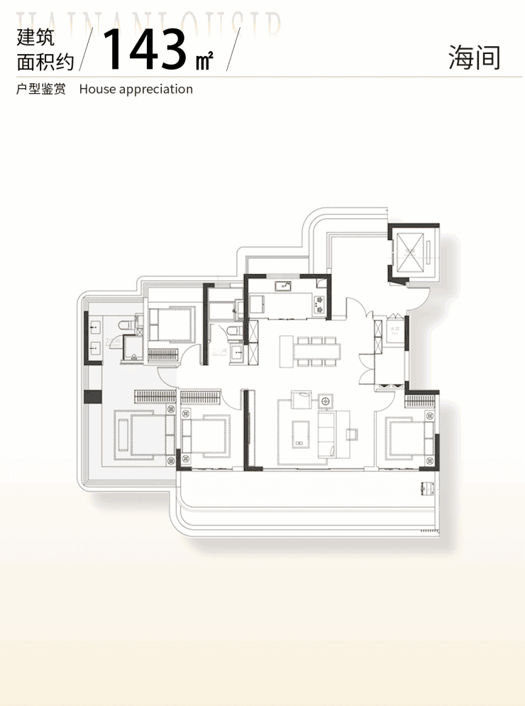 总的来说,在三亚,同样的143㎡的产品,能做到四房两厅两卫或有独立入户、有自带超大储物空间、奢厅宽阳台的不在少数。
