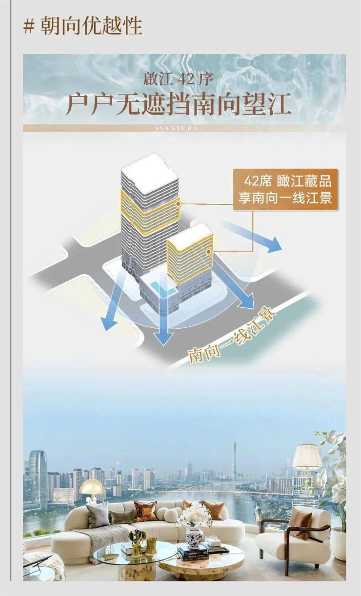 •一线滨江,南向瞰江,约110米亲江距离,一览约5000米的珠江两岸壮阔画卷